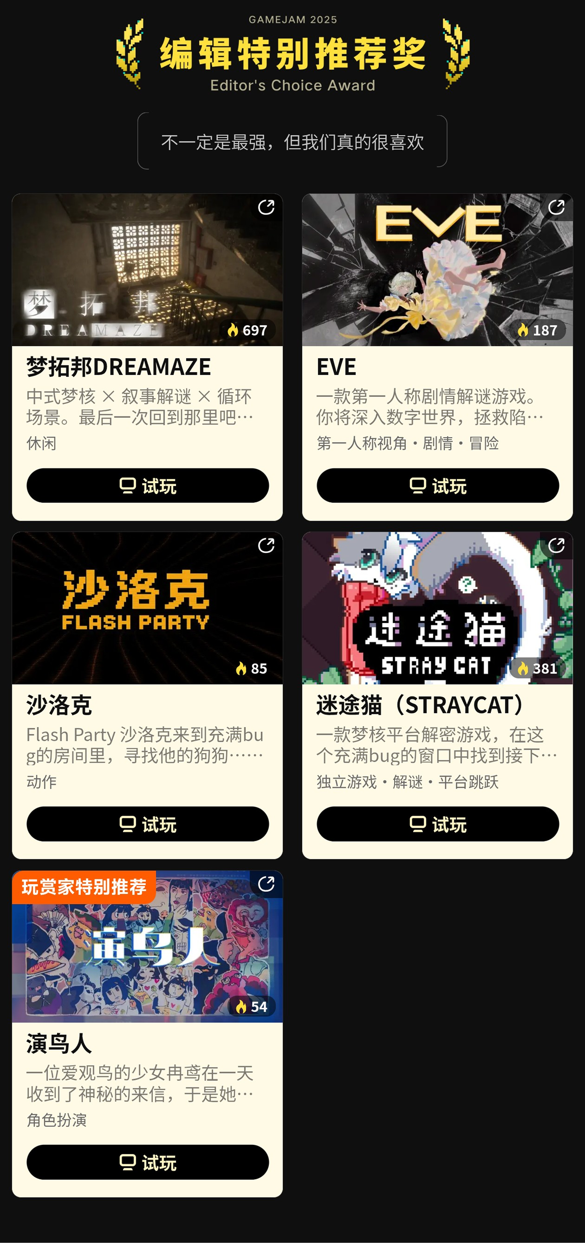 你也可以在聚光灯活动页面查看本次所有获奖游戏名单
