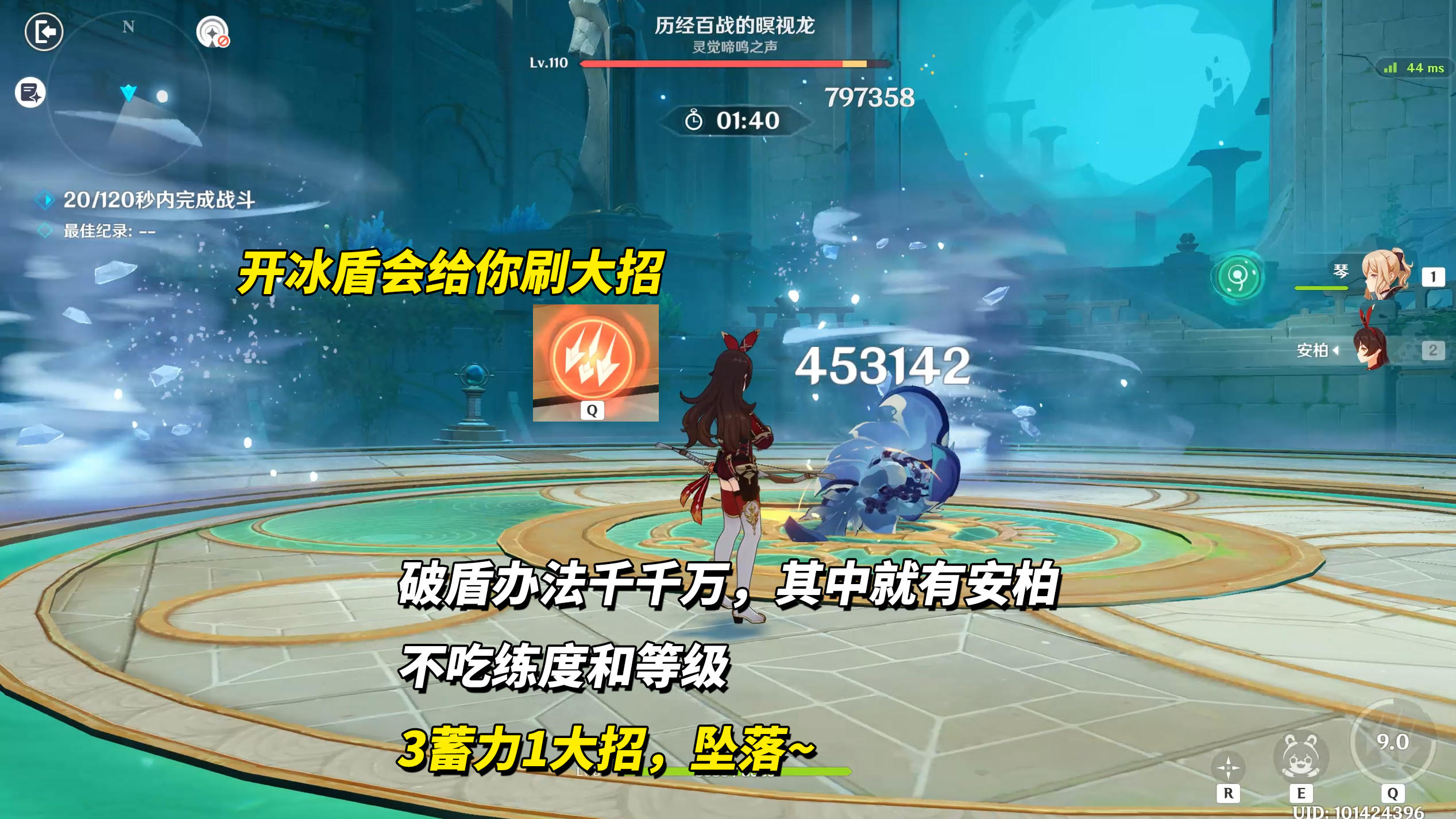 需要注意,战斗中哪怕它盾被你破除,也会时常在天上飞来飞去,推荐远程攻击体系,或者你带个琴在它每次飞天的时候用战技牵引给它拽下来~