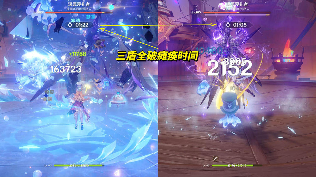 每次破盾有3秒间隔可输出,此为部分角色技能产球循环的时机;BOSS3元素盾都破除瘫痪18秒,足够各种体系输出1、2套伤害了。