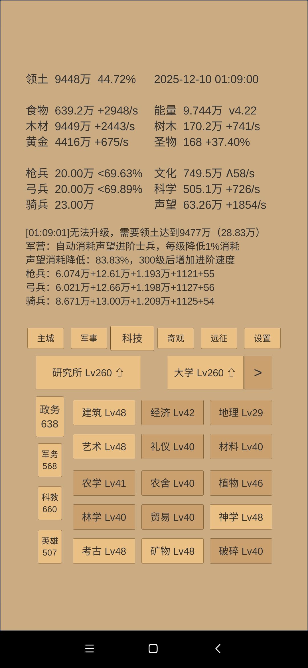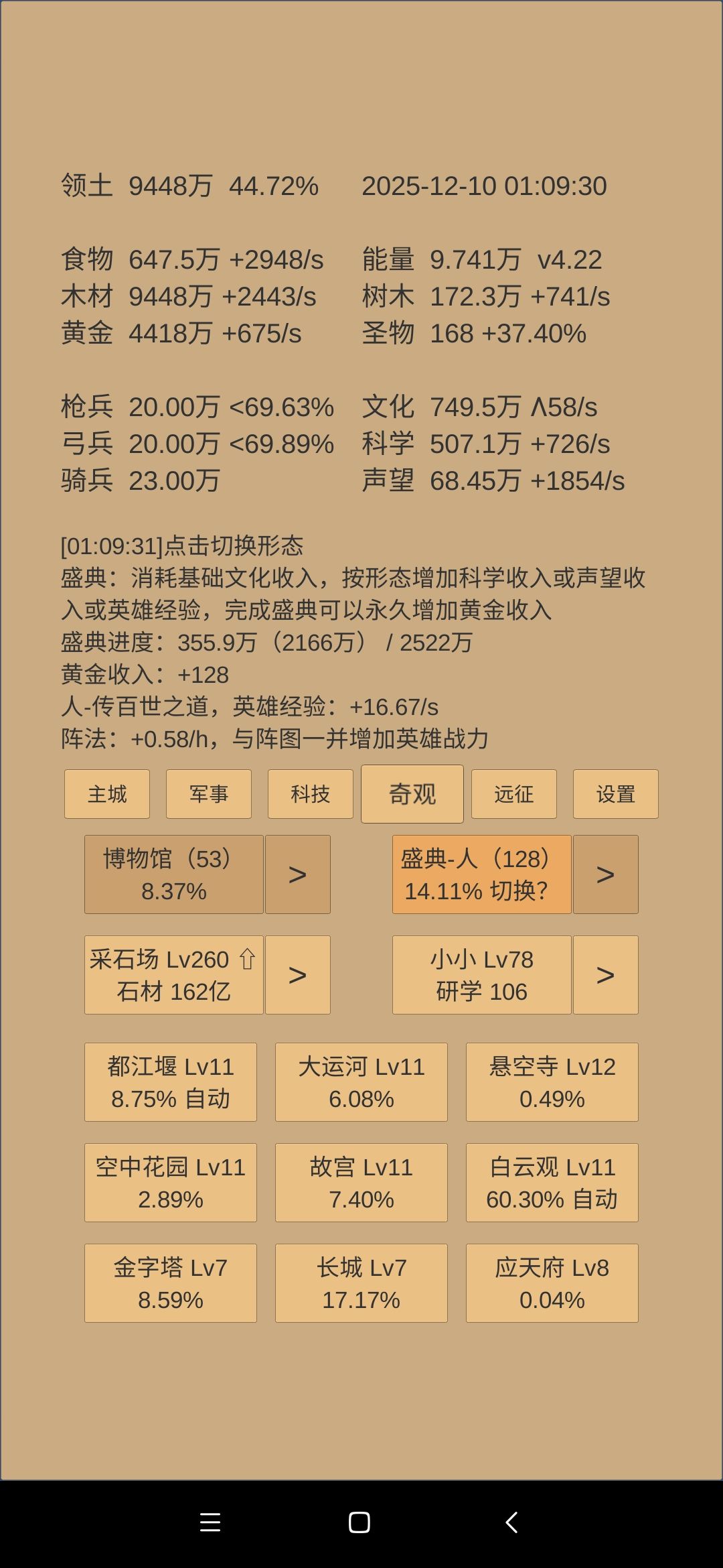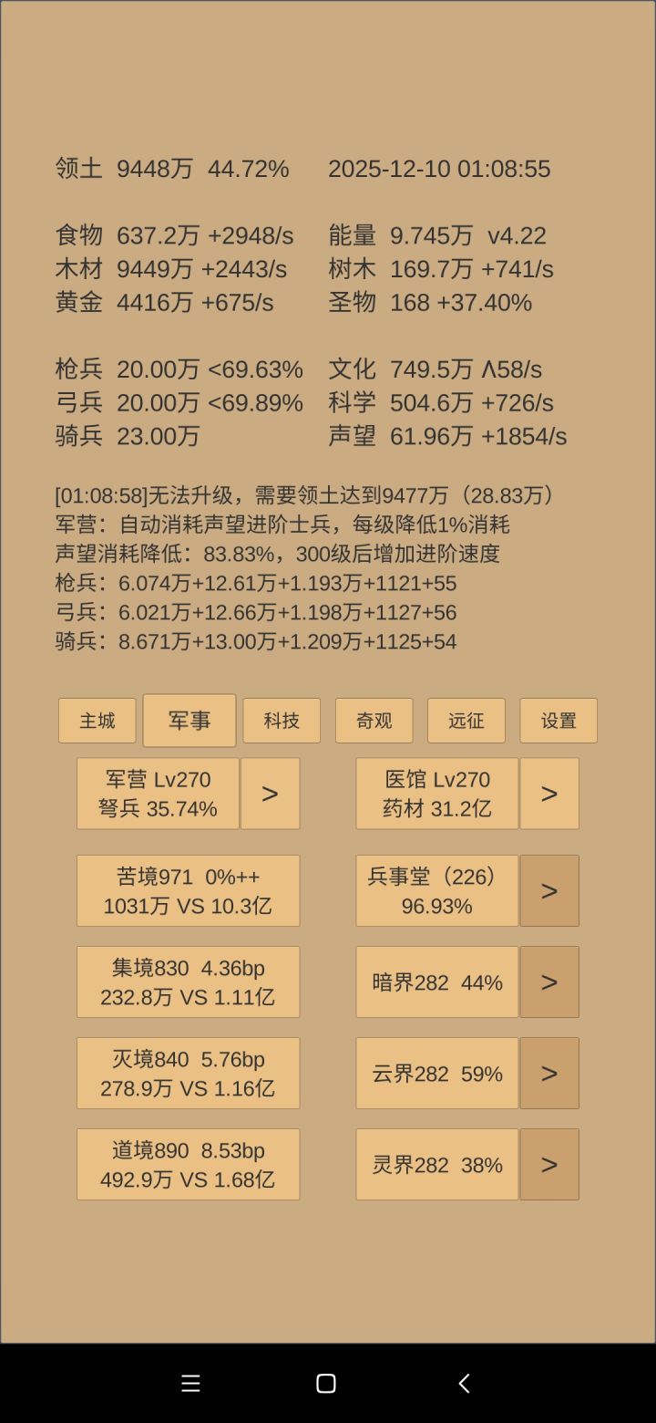 武学奇观陆续升级,按惯例要先出一万骑兵再升长城。
