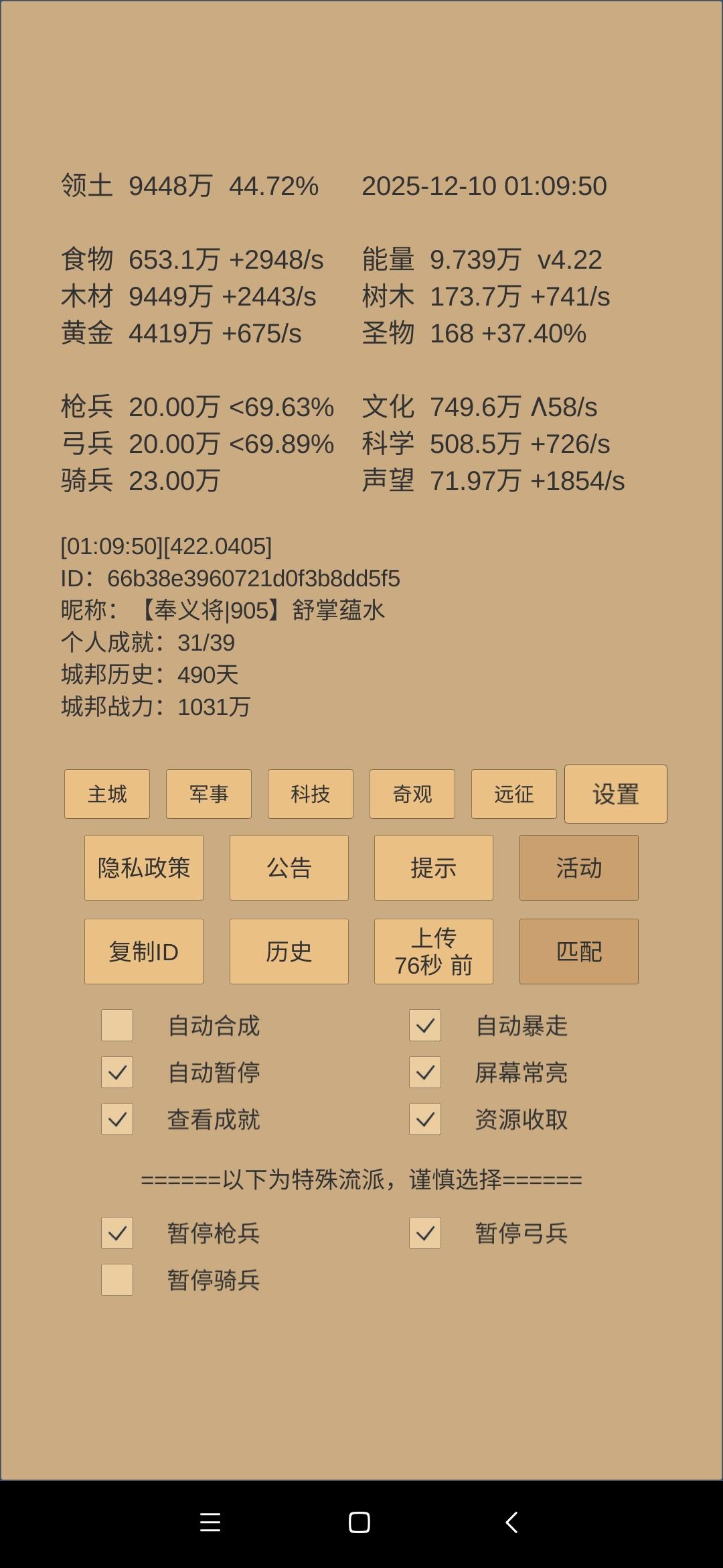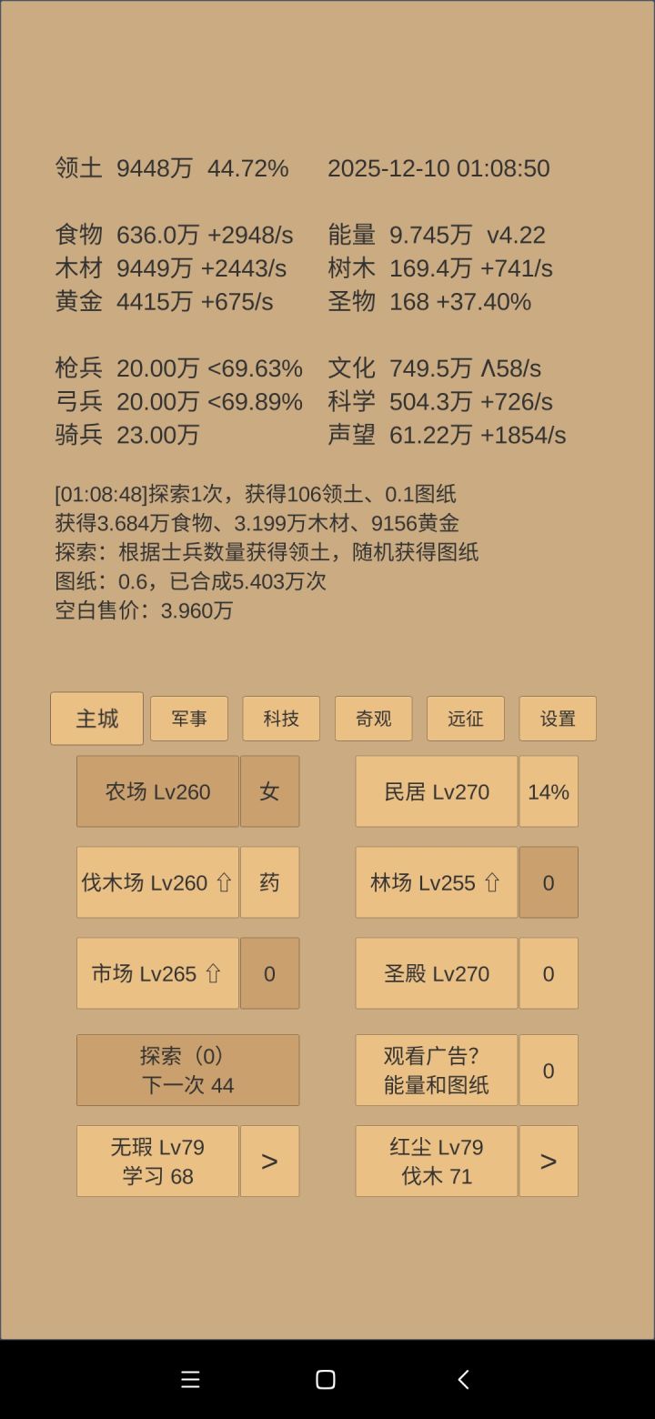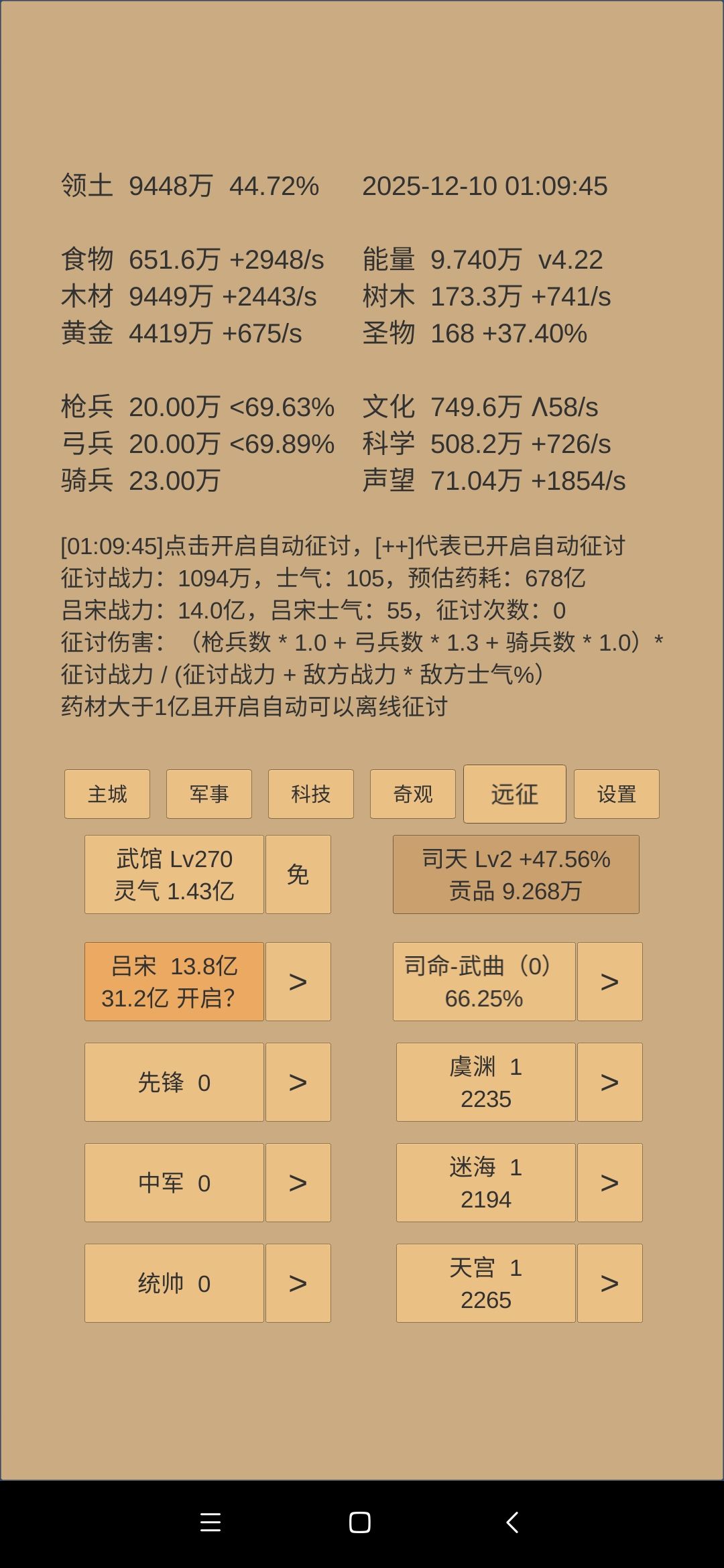 武学奇观陆续升级,按惯例要先出一万骑兵再升长城。