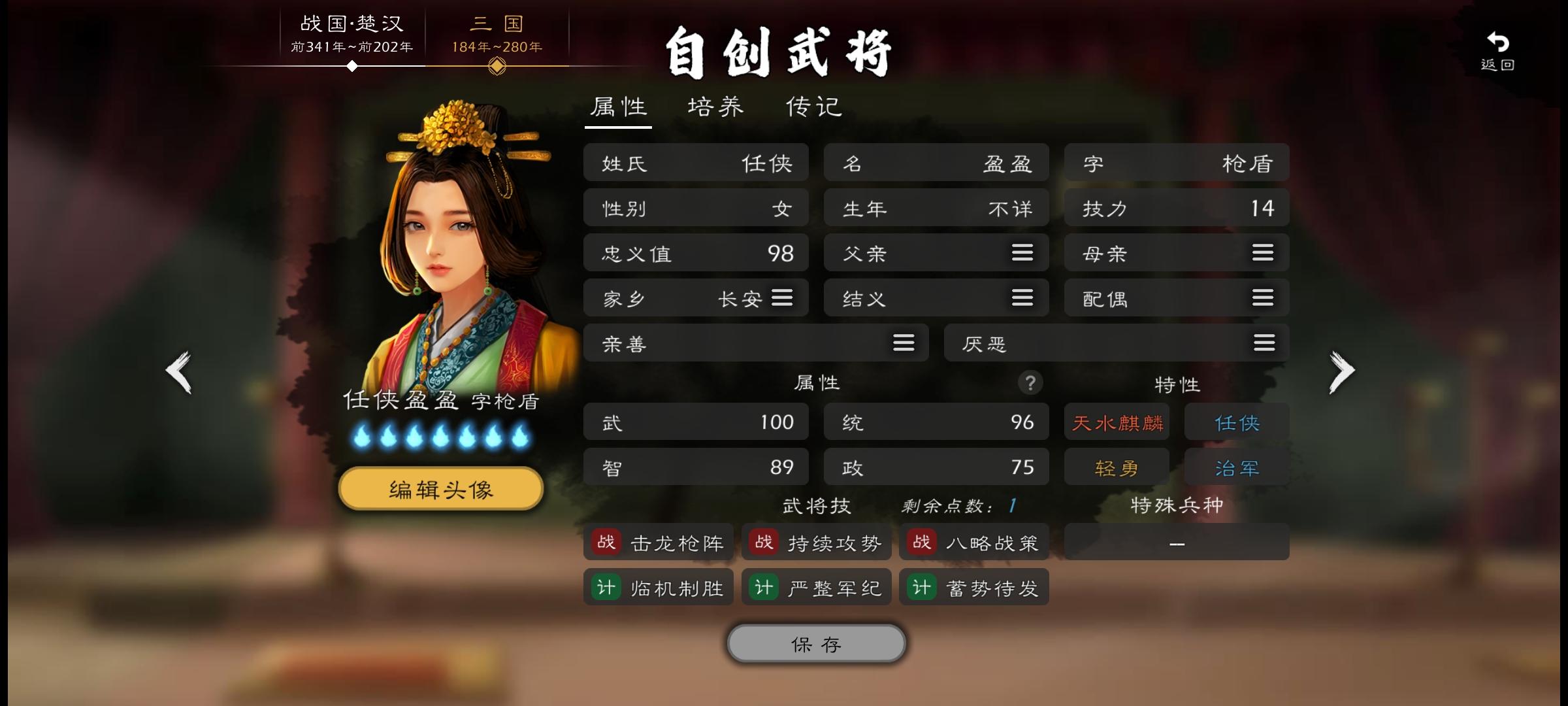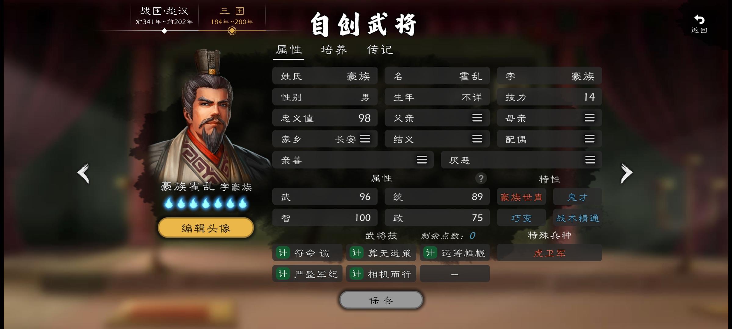 天赋页分别是,黑山101虎豹98任侠100豪族40。