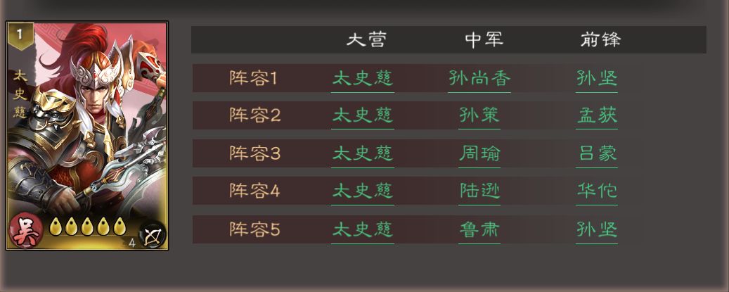 推荐5套实用阵容(太史慈站大营):