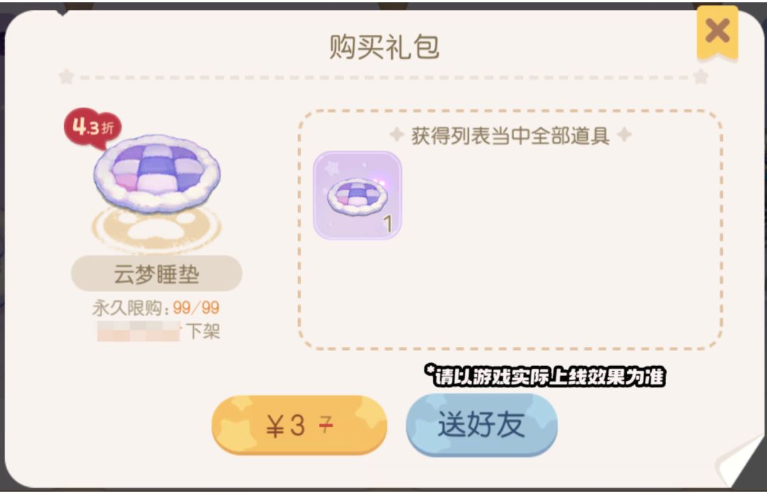 温馨提示:「云梦羊家具礼包」为限购1次礼包。