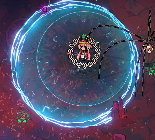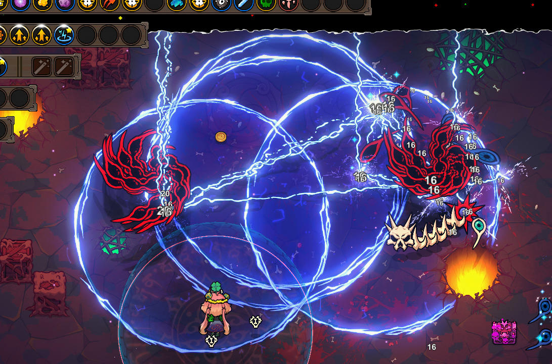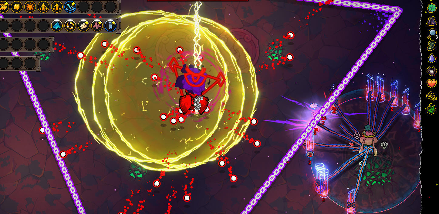 我们在玩这套法术组合的时候一定要经常性的进行跑位,不停地跑位,尤其是第三章的怪物太多,弹幕密集的情况下很有可能光之柱挡不完!所以移速类型的遗物真的很重要!
