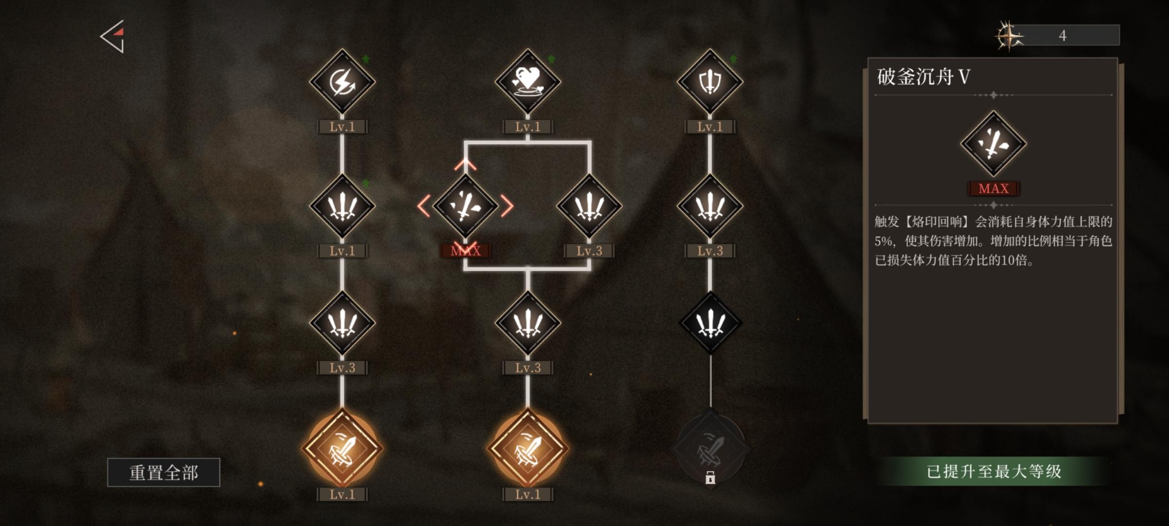 ①笔者用的,主破釜,除了龙母能秒杀外其他的无脑打,挨一下掉血输出更高,这一个可以只点一级超载暴击过渡即可,第二个破绽打不到,多余技能点点增伤、回血即可,第二行最后一个也可以舍弃;