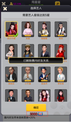 圈友一个6星艺人满圈友可以固定增加22%首映,在获取到一个艺人的时候要先看下这些6星都需要哪些艺人做圈友,后期的5星跟6星艺人就可以往这个方向去积攒,实在有重叠圈友的可以使用圈友册进行更换即可