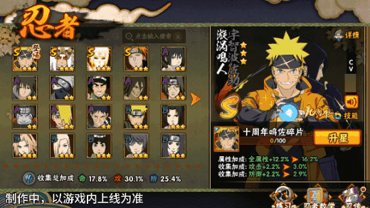 12月19日0点,十周年招募正式开启,完成任务免费领300抽,可招募十周年特别纪念忍者漩涡鸣人·宇智波佐助!学员们可以在“送S鸣佐”活动中一键装备十周年装扮;装扮后将自动更换决斗场全套主题场景,还有周年主场景也会“变身”为十周年主题样式哦!