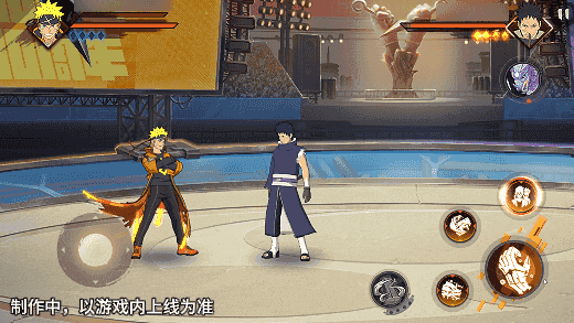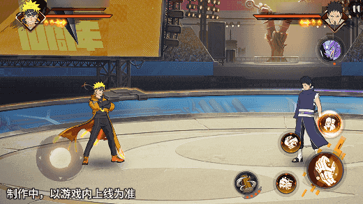 鸣人登场时普攻共4A,1A用尾兽化的外衣形成爪子向上爪击,2A转身用尾巴横扫,3A跃起连续爪击,期间可以拉摇杆多次转向拉扯敌人,4A推出一记螺旋丸。