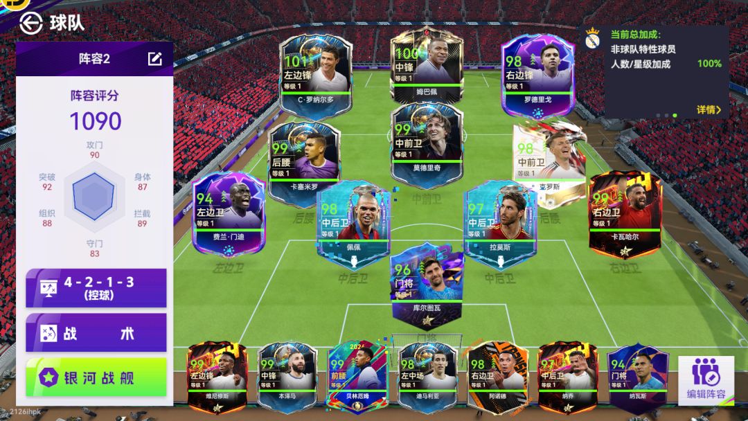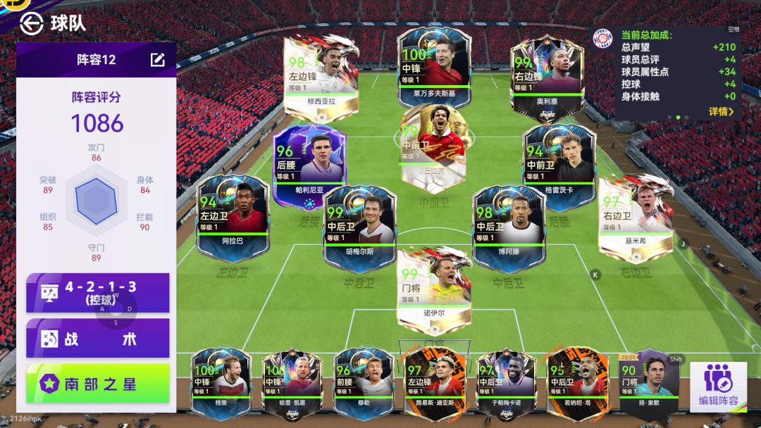 拜仁慕尼黑套:夯!整个阵容无弱点且均衡,前锋要速度有速度,要支点有支点,中场要组织有组织,要拦截有拦截,后防也硬,高度也不错!替补席还有一大堆天兵天将,夯爆了!