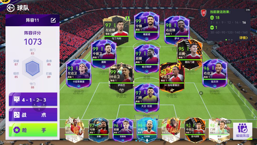 阿森纳套:整个队套并无太大缺点,但是一些高分卡优势不明显,如梅里诺,萨卡,综合给到夯和顶级之间!