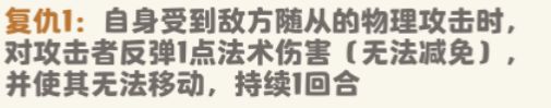 该技能是一个反制性技能,若敌方物理系随从攻击了自己,则会限制其移动,且反击其1点伤害。小tip:该技能会在奥术法师达到6级时,升级为复仇2,反击的伤害提升至2点!