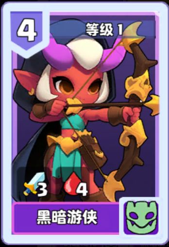 黑暗游侠,种族归属--‘精灵’,待机值4,1级基础属性3|4,满级基础属性5|8。黑暗游侠不仅可以超远处击杀敌方随从,也是一个对空好手!!