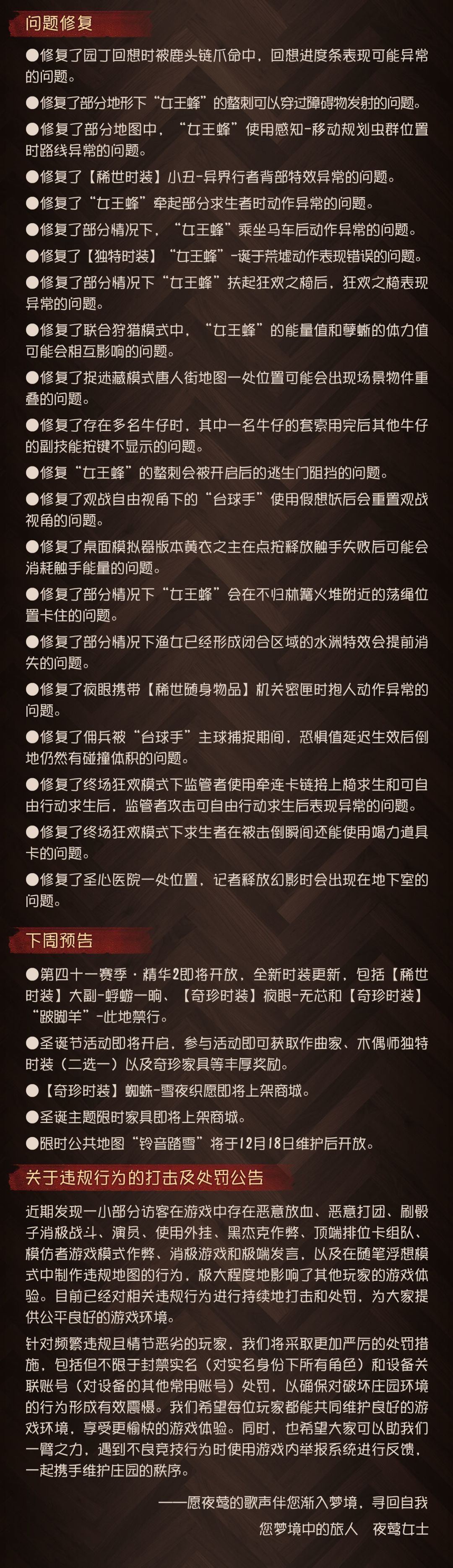 #第五人格维护公告