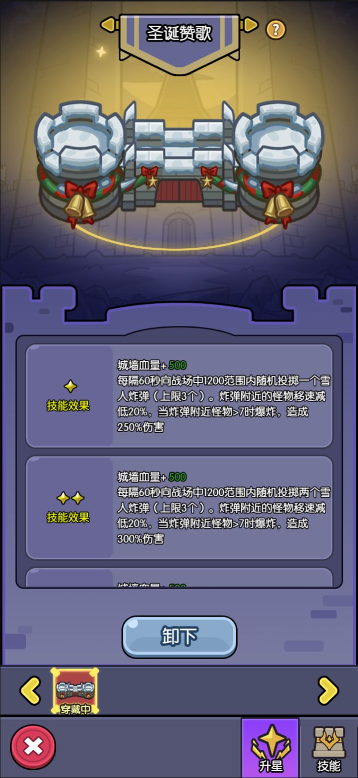 1、首次激活城墙皮肤时,获得一个新技能;新技能需手动在技能界面装备,装备后才可在战斗中生效;