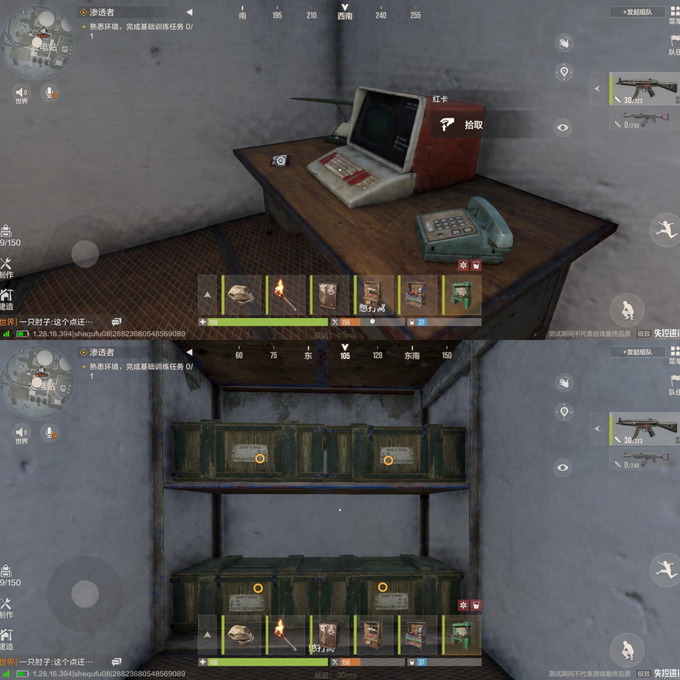 红卡刷新点就在桌子上,对面就是四个板条箱,大家来探索的时候一定不要忘记了,因为蓝卡房是分两层的,从楼梯上来就可以看到红卡和板条箱了