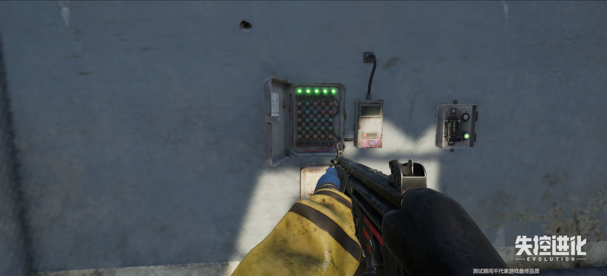 这个是蓝卡房的电路箱从绿卡房的楼梯上来就可以看到了,并且电路箱傍边就有一个蓝卡门,蓝卡门和绿卡房一样也是两扇门,但是物资分布都是一样的