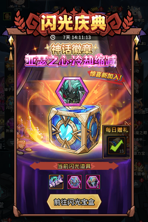 四、神话徽章亚瑟之心.冷却缩减加入闪光宝盒!每日登录得闪光锤