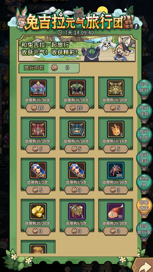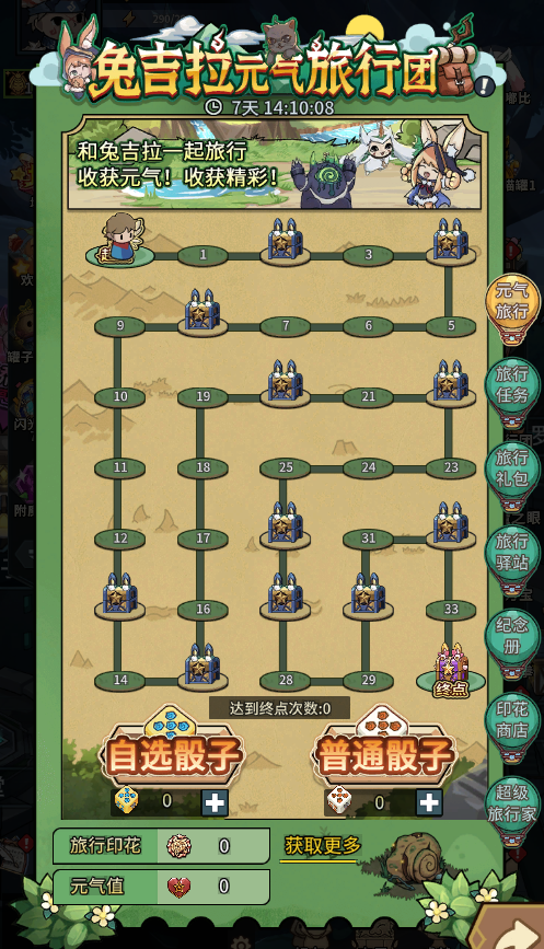 1、活动期间,可以通过完成任务或购买礼包等途径获得旅行骰子,使用骰子可以在活动地图上与兔吉拉一起旅行