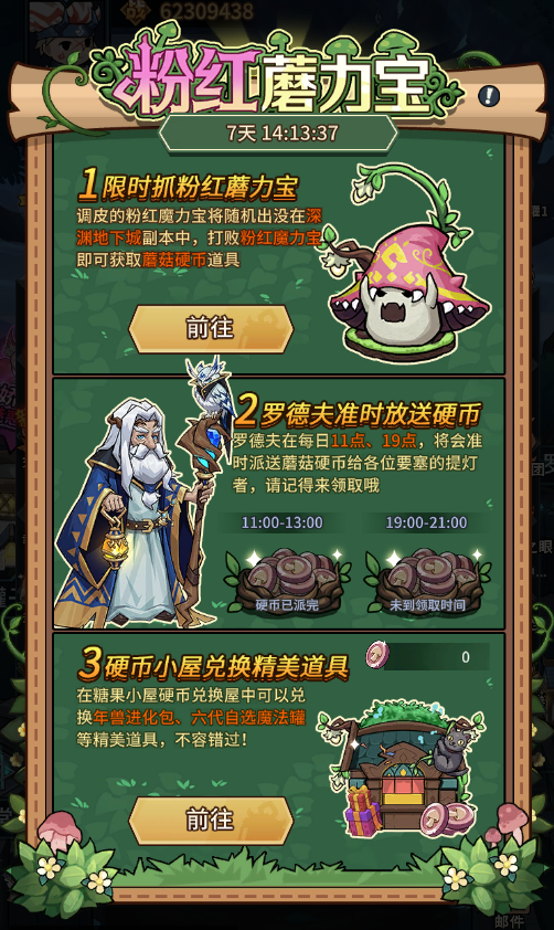 3、活动结束后未使用的【蘑菇硬币】将会转成金币,在活动结束后通过邮件发放