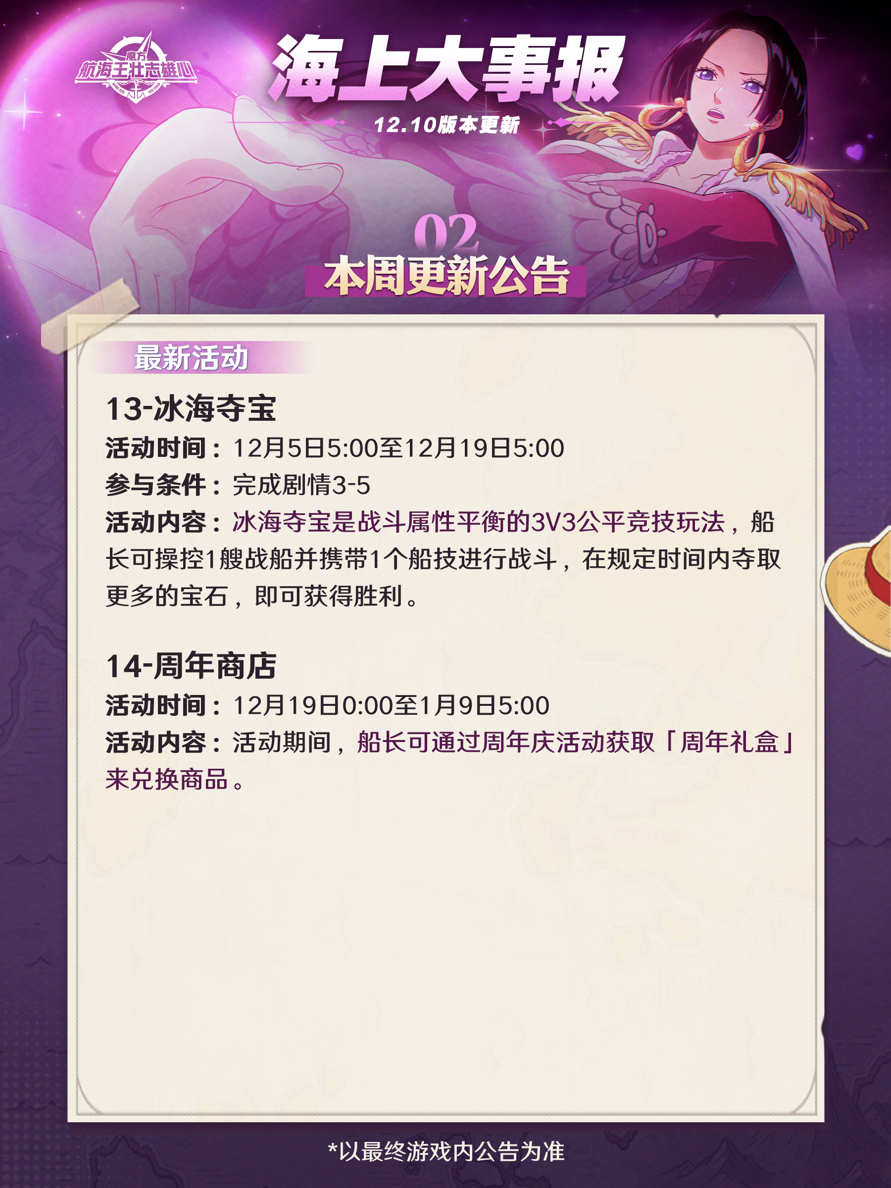 海上大事报|汉库珂主题活动玩法更新