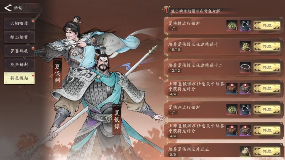 与此同时,在新版本中先前陪伴明公的夏侯兄弟也增加了同样的册封活动,明公可手动将之前版本溢出的册勋谱在背包分解转化为金铢。