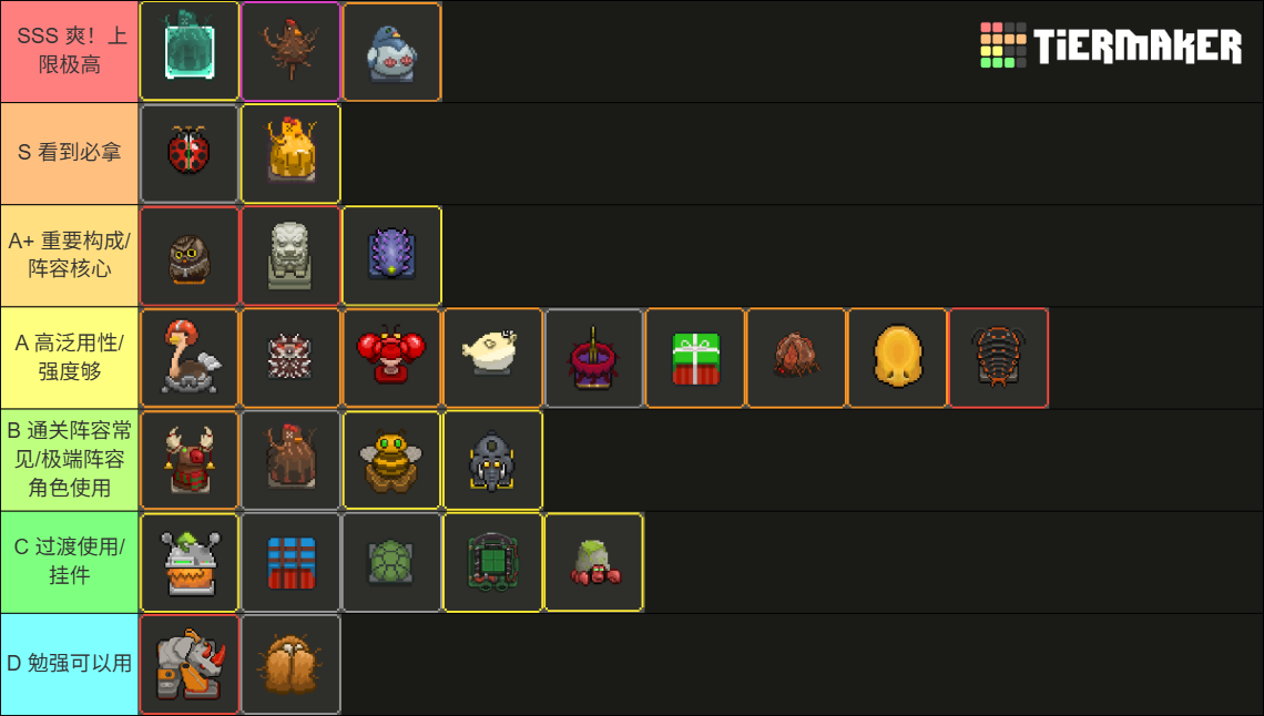 S:成形爽度高,强度高,泛用性高,拿到的话,通关率高