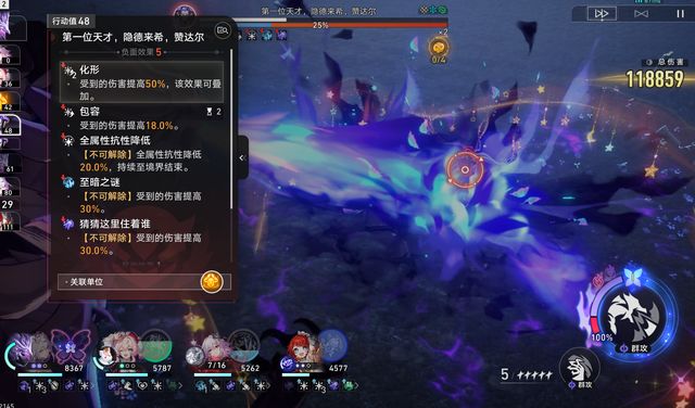 上半是风和雷弱点,这样的话可以直接上dot队,阿雅,飞霄、黄泉等等,选择特别多;下半是冰虚数弱点,大黑塔万敌就可以对付了。