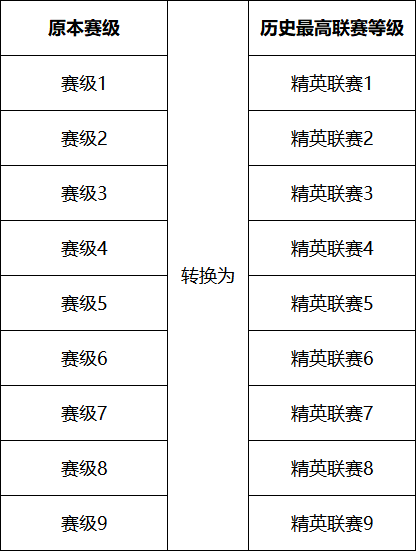 1)本周更新:旧赛级(包括上赛季结算本该晋升到的赛级)将会等效转化为历史最高联赛等级(赛级1-9分别对应精英联赛1-9)。如果车手的当前联赛等级低于历史最高联赛等级2级以上时,晋级后会直接提升2级联赛等级,以此来帮助晋级车手1-2个结算周期内就回到自己原本的等级。