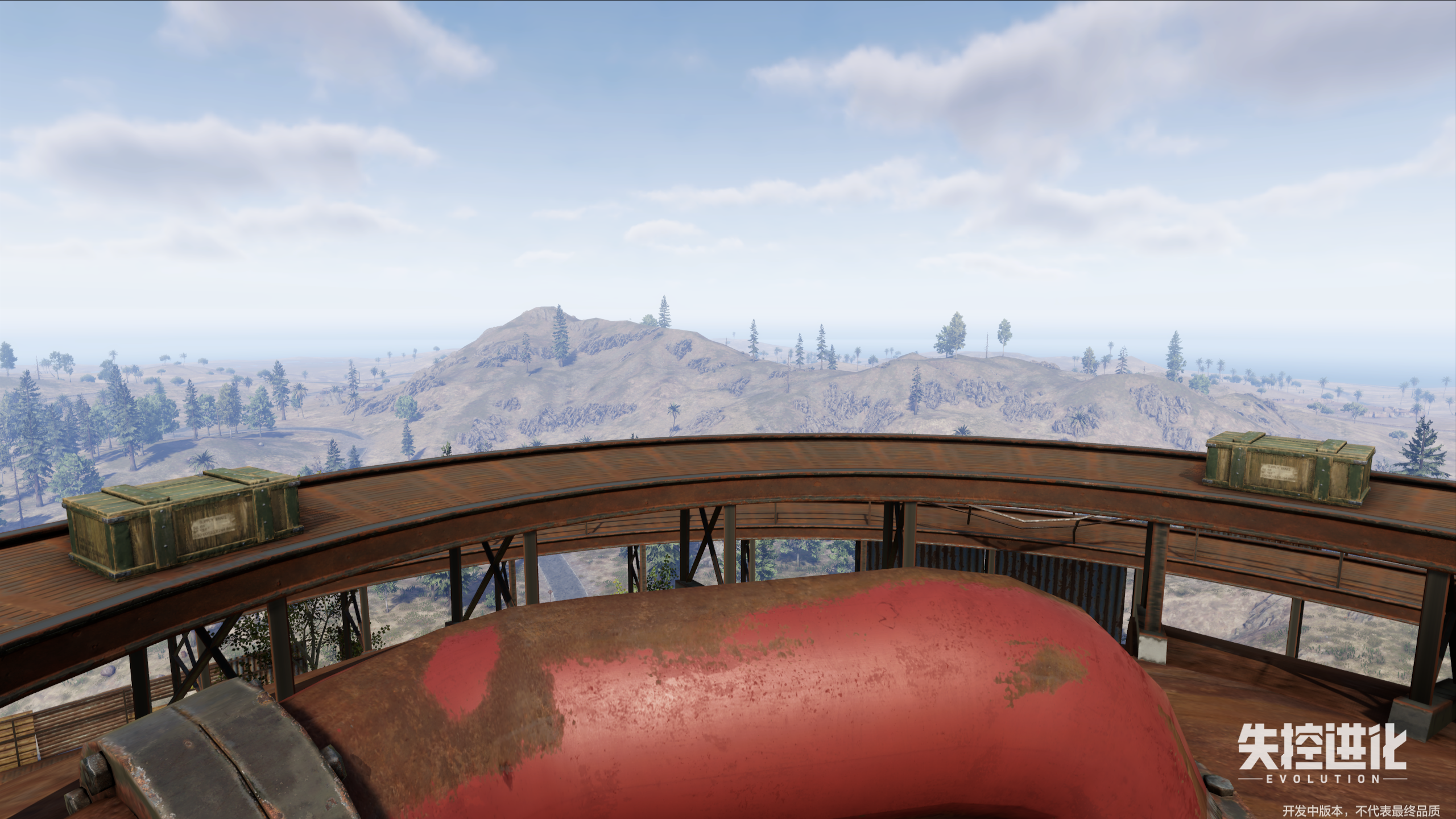 继续沿着路到下一个圆盘,同样有两个物资箱。注意四周钢管处,可能有隐藏板条箱。