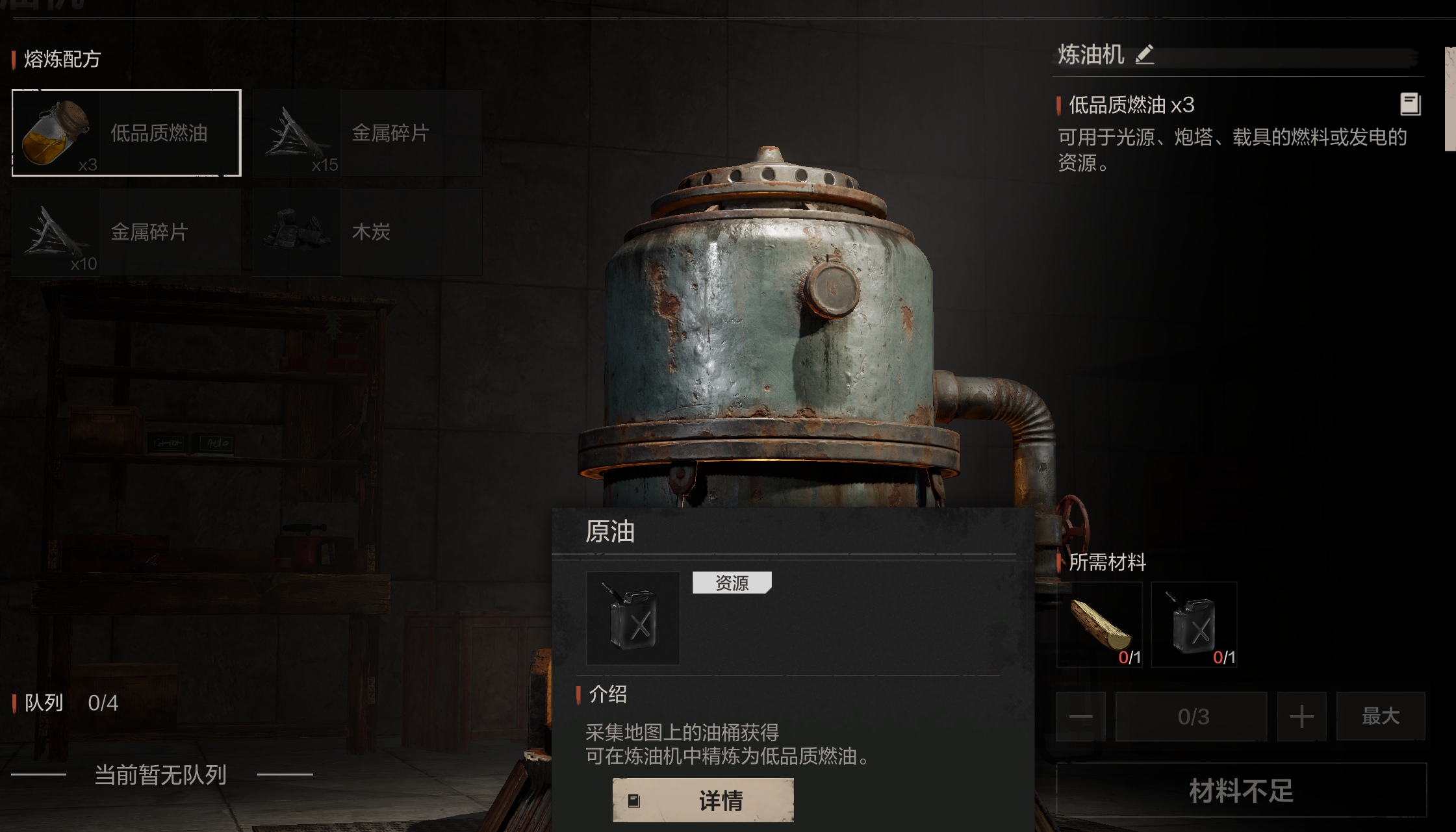 楼顶是资源最丰富的地方,但楼梯口附近有两个怪蹲守,可用弓箭慢慢消耗它们的血量。楼顶有三个箱子,注意少量辐射,建议穿上抗辐射的衣服。(概率刷三个)原油位置: