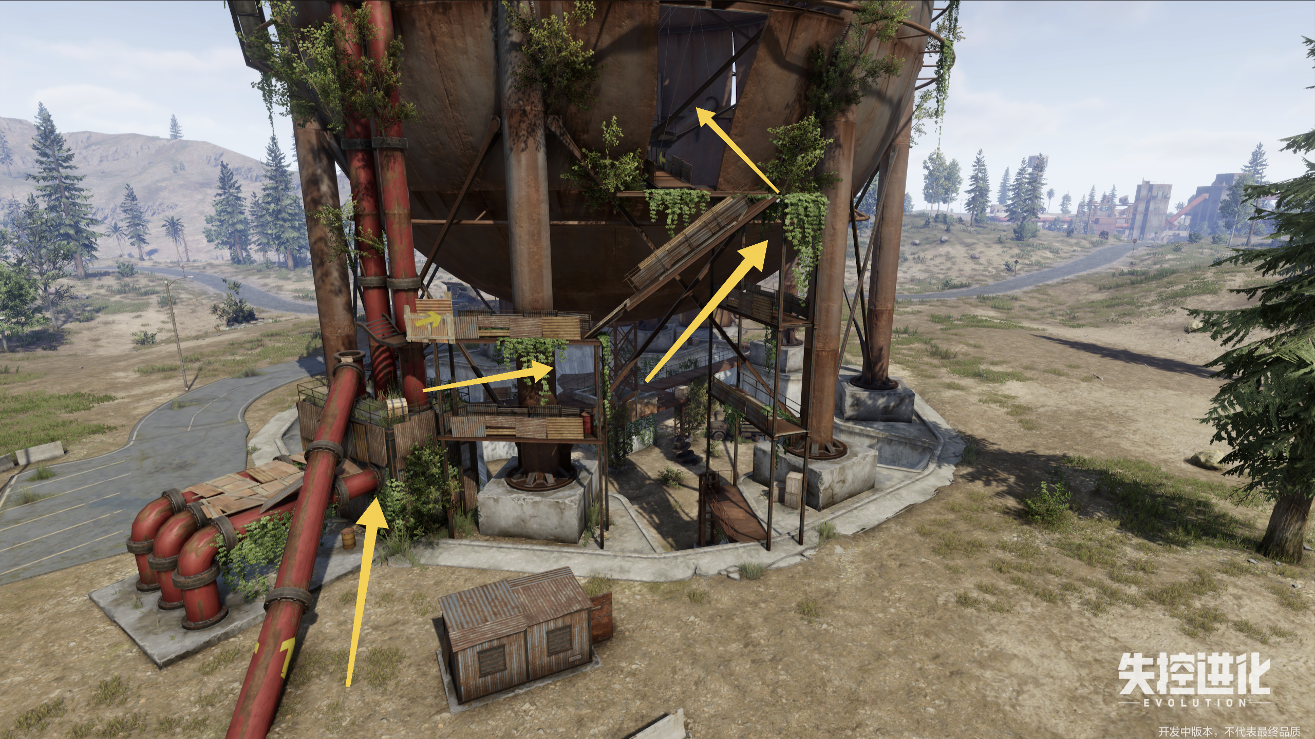 失控进化之大铁球攻略在《失控进化》中,大铁球是一个重要的资源点,以下是获取其中物资的详细攻略:大铁球的绿皮箱和物资箱以及炼油机位置在下图