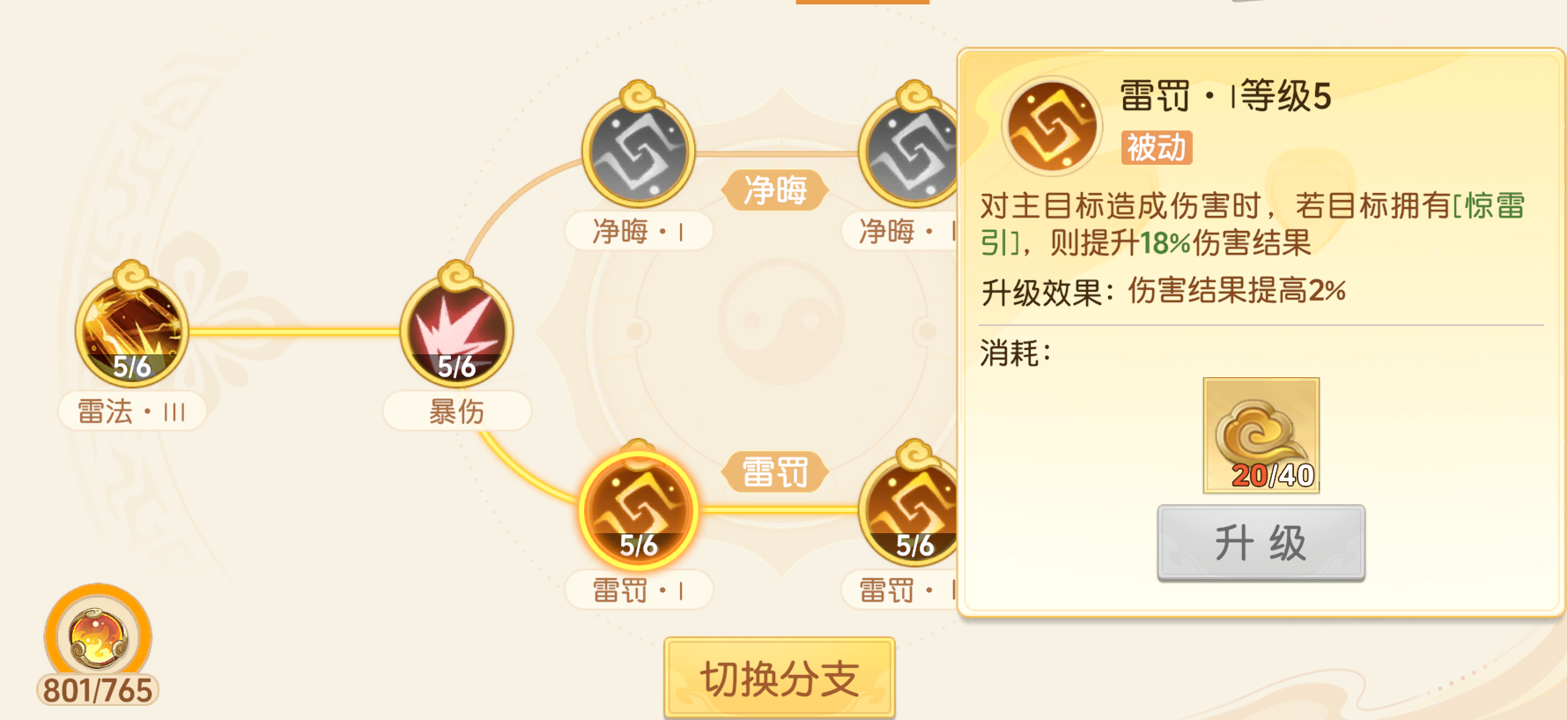 雷罚二:如果目标有惊雷引,攻击的时候有概率提前触发