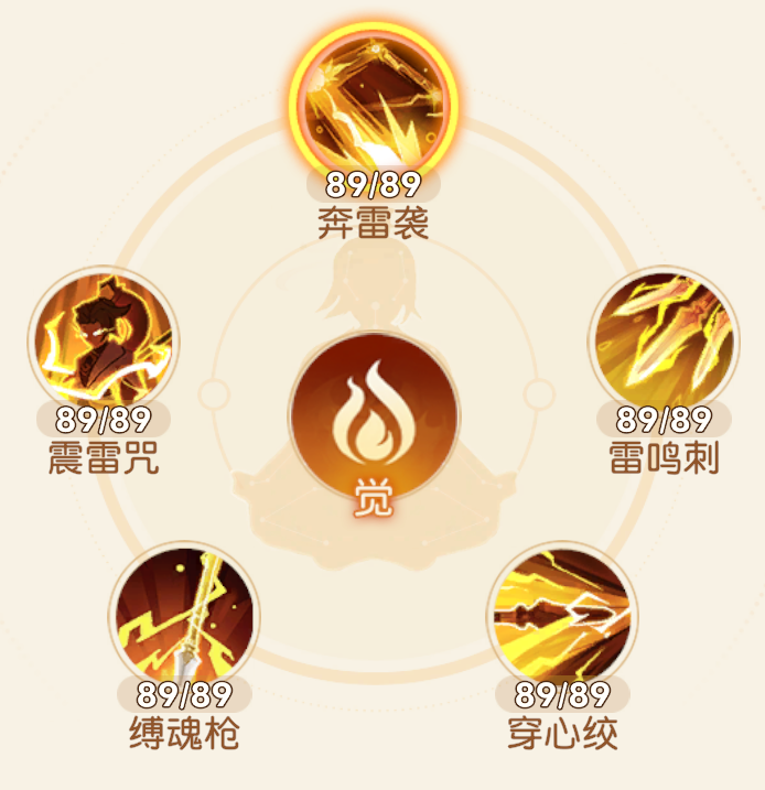 觉醒:获得三层雷印,攻击的时候挂上两层惊雷引,配合群攻技能效果最佳