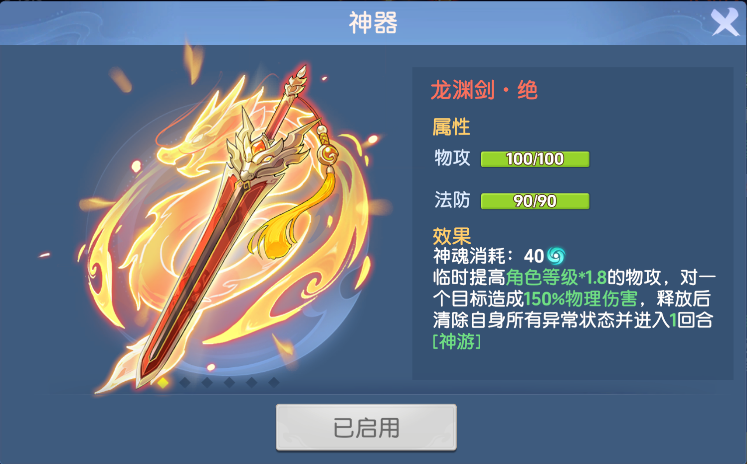 神器方面首选龙渊剑,当然也可以剑走偏锋混沌钟