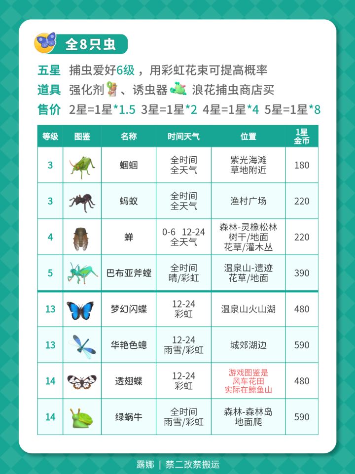 12月11日 全新图鉴攻略 虫点位 菜利润 (全)