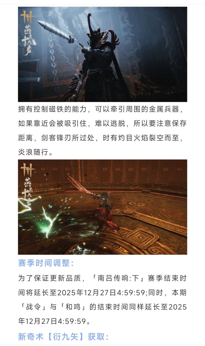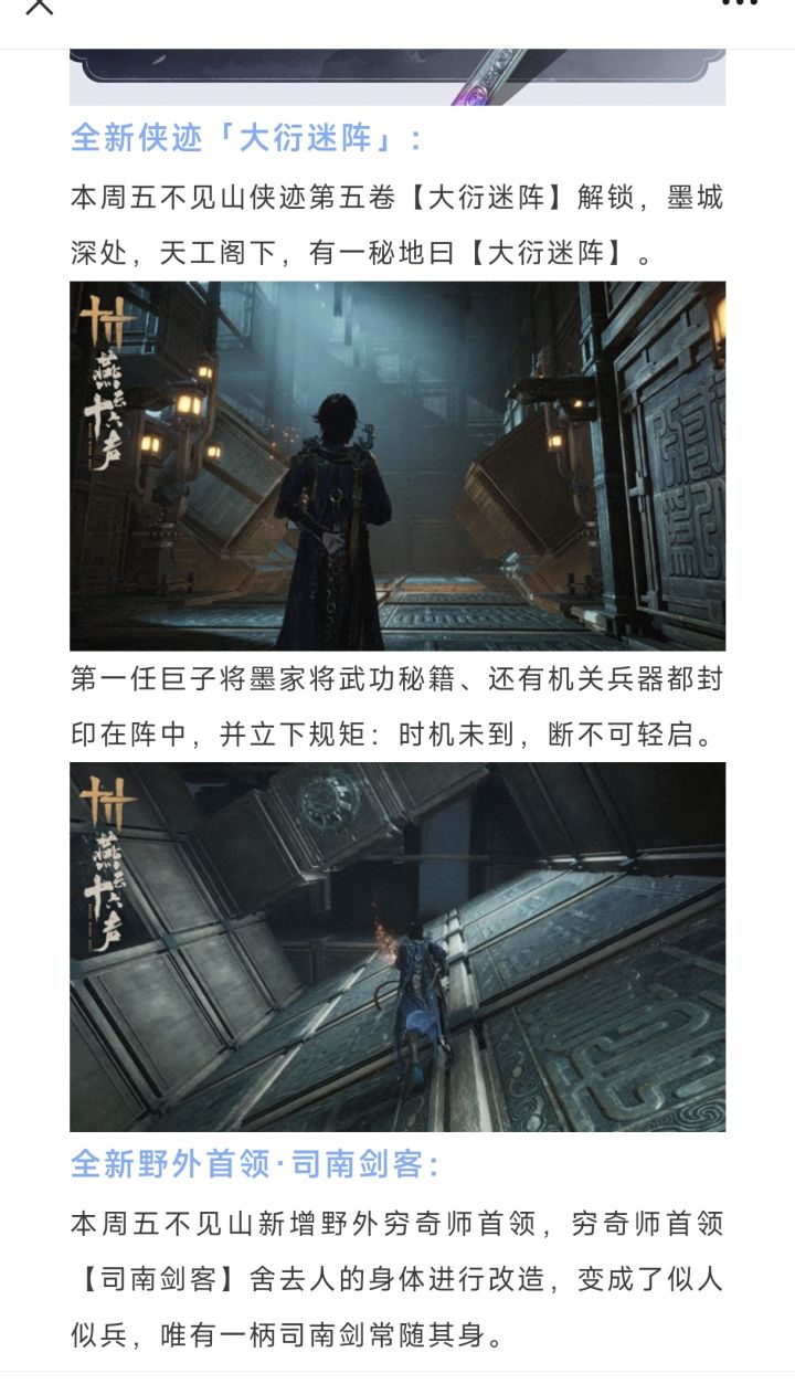 燕云十六声新奇术【衍九矢】获取,明天不见山新主线,赛季时间调整,全新侠迹【大衍迷阵】,全新野外首领司南剑客!