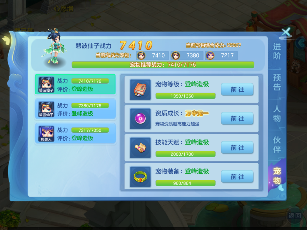 1)宠物分页新增了玩家当前最高战力宠物信息;