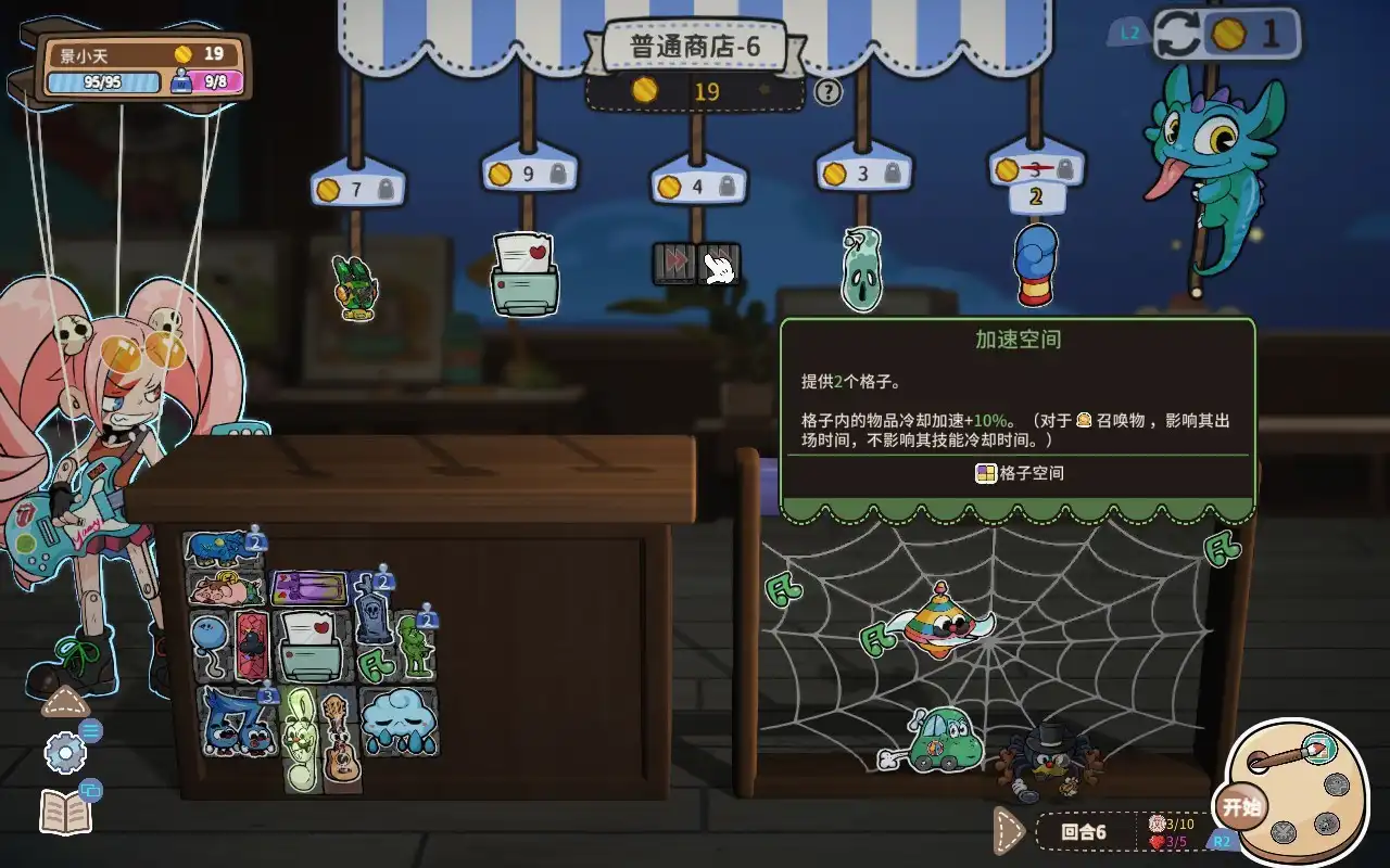 而我们的战力则很直观的集中体现在我方的背包格子中,包括玩具召唤物、法术、装备以及一些需要顶格放置的建筑。由此可见,一切的基石首先就是背包。一方面如果没有充足的背包空间,那你根本就“英雄无用武之地”;另一方面如何通过背包之间的方位拼接以及物件自身的旋转达成“寸土寸金”的资源效率最优解无疑是获胜的关键。
