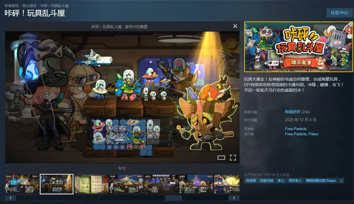 《咔砰!玩具乱斗屋》是一款带有背包管理玩法的自走棋类型对战游戏。此类玩法虽然并非首创,但实际上市面上的绝对数量也并不多,更何况游戏的主角是一个个可爱的玩具兵,涵盖各种类型,主人公绝对是个富哥!玩家需要将其放置在一个个格子内作为召唤物登场作战,配合各种装备、法术以及陷阱建筑形成一套成体系的战斗阵容。游戏虽然无法直接联机对战,但是支持异步PVP,你的强力阵容很有可能是另一玩家的噩梦。