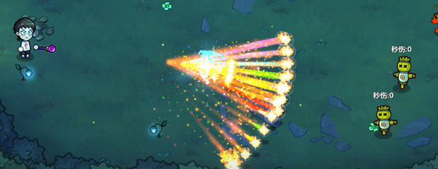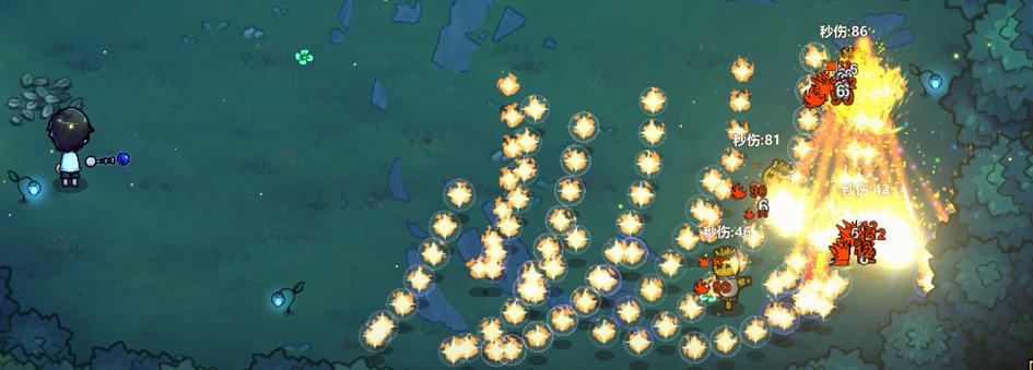 烈焰核心的技能效果我就不阐述了,伤害对于我们这套组合来说根本不是重点,我们追求的是他可以给彩虹渲染上色的效果!