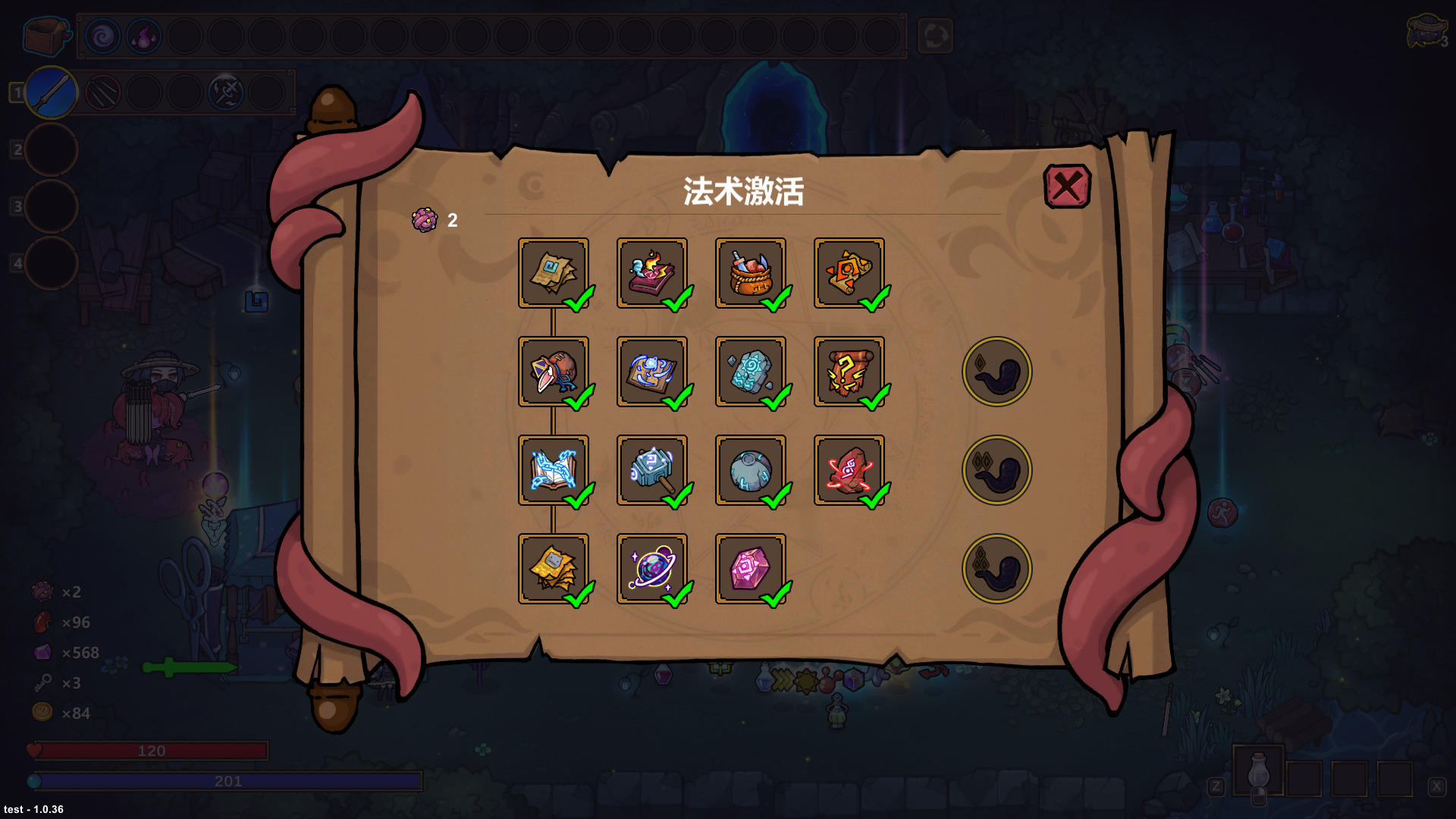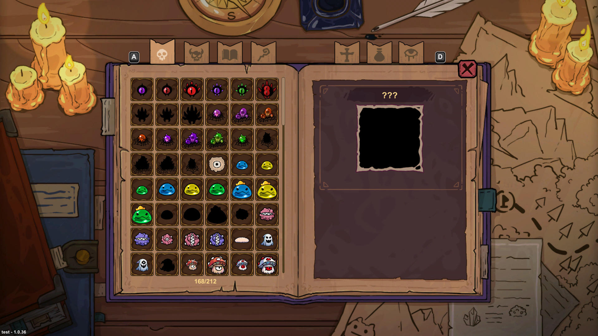 看了下图签,目前有212种怪物、22种BOSS、100种法术、100根法杖、80种遗物、35种药水、60种诅咒。
