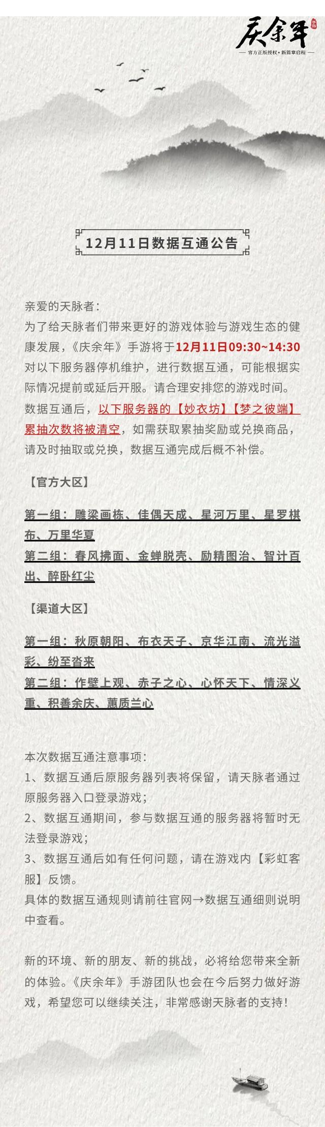 为了给大家带来更好的游戏体验,《庆余年》手游将于12月12日(周五)05:00进行一次不停机更新,本次更新内容如下: