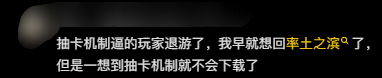 不过确实有不少人最近退坑了,因为新卡越出越强。有不少人转战三谋和现在的新SLG,比如王于、策定九州,主要是现在的新SLG后发优势明显、抽卡便宜很多,很多都是388金币5抽,平民负担小很多。