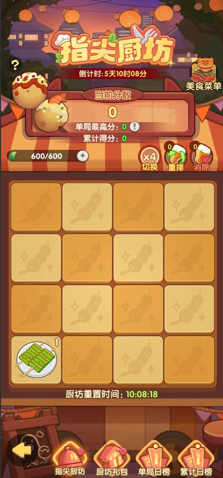 美食合成赛,大厨你来当!滑动方向让格子上的美食同步移动,相同美食相碰可合成高阶美食。移动会消耗体力,开启倍速效率更高!体力每日重置,棋盘也会随之重置哦~排行榜每日刷新,奖励依照排名进行发放。快来一起争做大厨,烹饪美食~