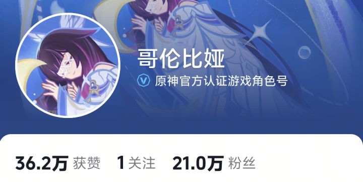 原神哥伦比娅抖音共创爆红,粉丝破21万