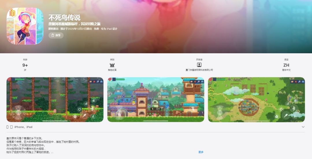 4.良心工作室发行的《不死鸟传说》IOS端已经开始预约,不过日期依旧是占位符31日。如果可能的话最快是月底发售,否则就是明年一月初了。