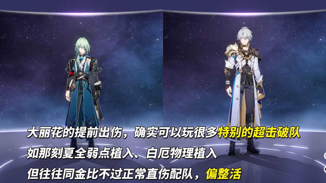 ③流萤、波提欧、乱破都没的玩家。确实可以搭配其他角色整活,如那刻夏、还是白厄,但最终数值表现同金都不如原直伤配队,偏向于整活。