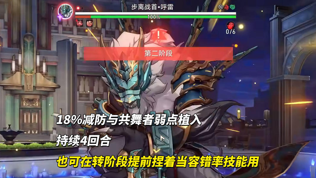 「终结技」群体20削韧,并植入所有共舞者属性弱点、降低18%防御力,持续4回合。
