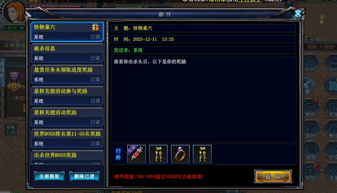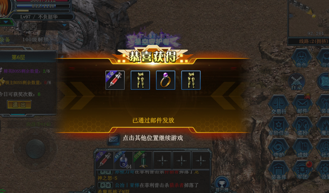 击杀精英BOSS大概率是蓝色装备,击杀领主BOSS能获得金色装备